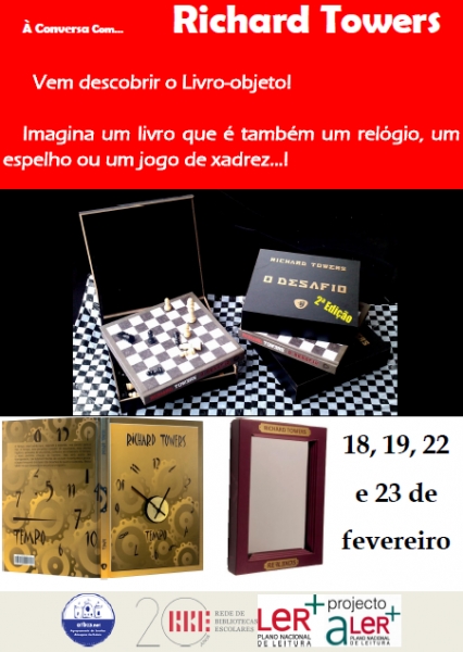 A festa da leitura e a celebração da Semana da Leitura já começaram no nosso Agrupamento! De 18 a 23 de fevereiro vamos ter, no nosso Agrupamento, a presença do Escritor Richard Towers! O autor do projeto Livro-Objeto vai dinamizar sessões de promoção da leitura, através da abordagem à sua obra literária. Todos os alunos, desde o ensino pré-escolar até ao 3.º Ciclo vão participar nesta grande festa literária!