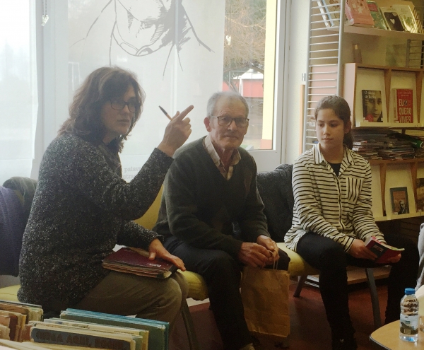 Na segunda parte da sessão, houve a leitura de mais sete poemas do livro do senhor Manuel, escolhidos de acordo com as temáticas das aulas dos alunos, ora feita pela Ana Miguel ora pela professora Lídia, como forma de agradecimento ao nosso poeta.
