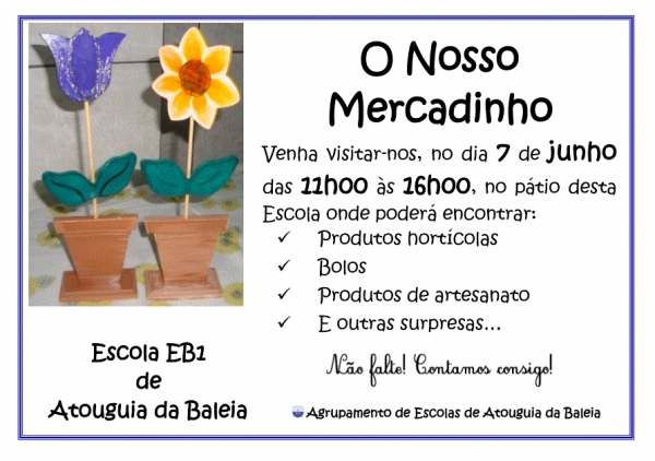 No próximo dia 7 de junho, das 11:00h às 16:00h, vai decorrer o tradicional Mercadinho, no pátio da EB1 de Atouguia da Baleia.